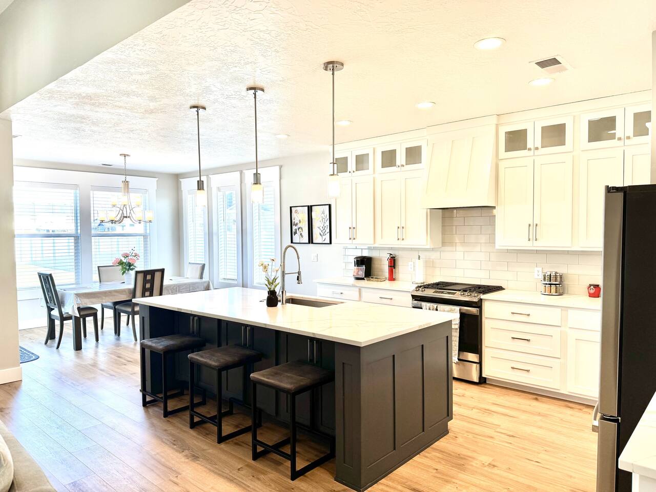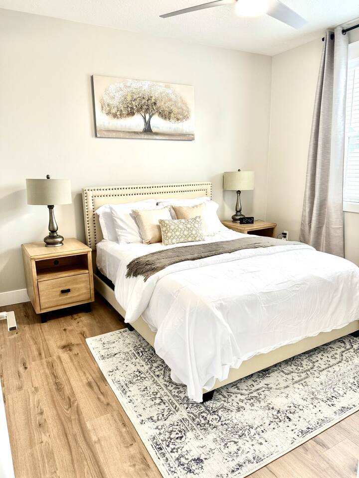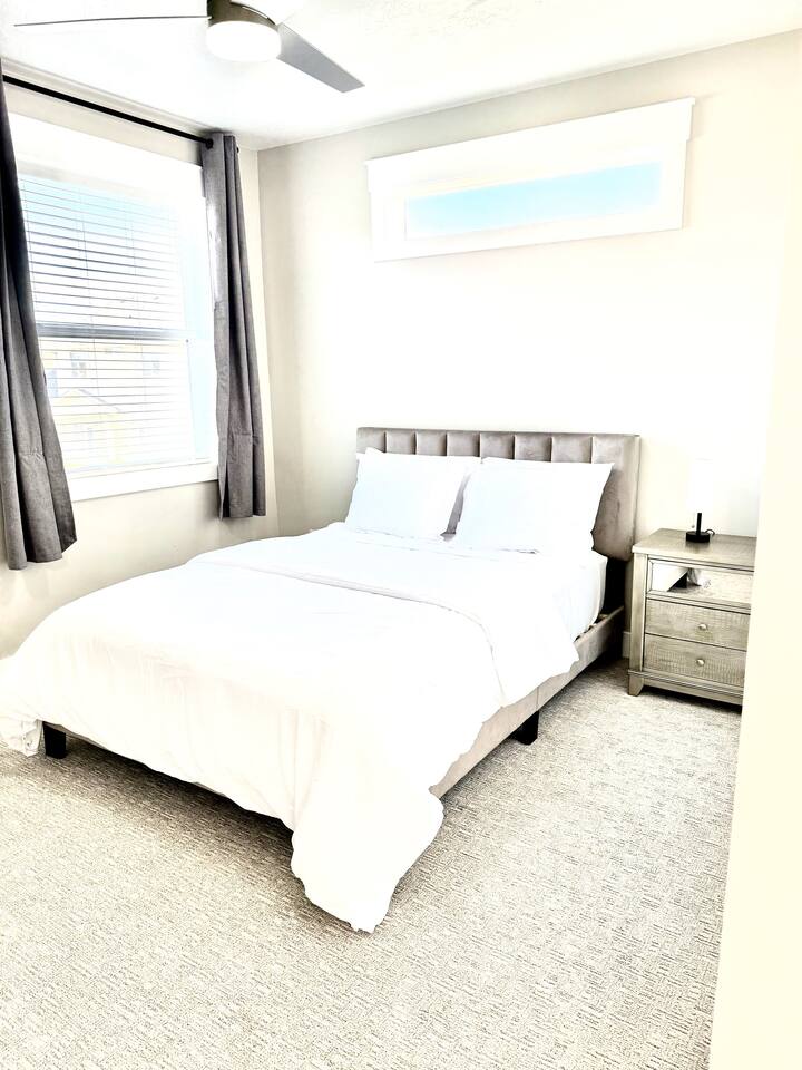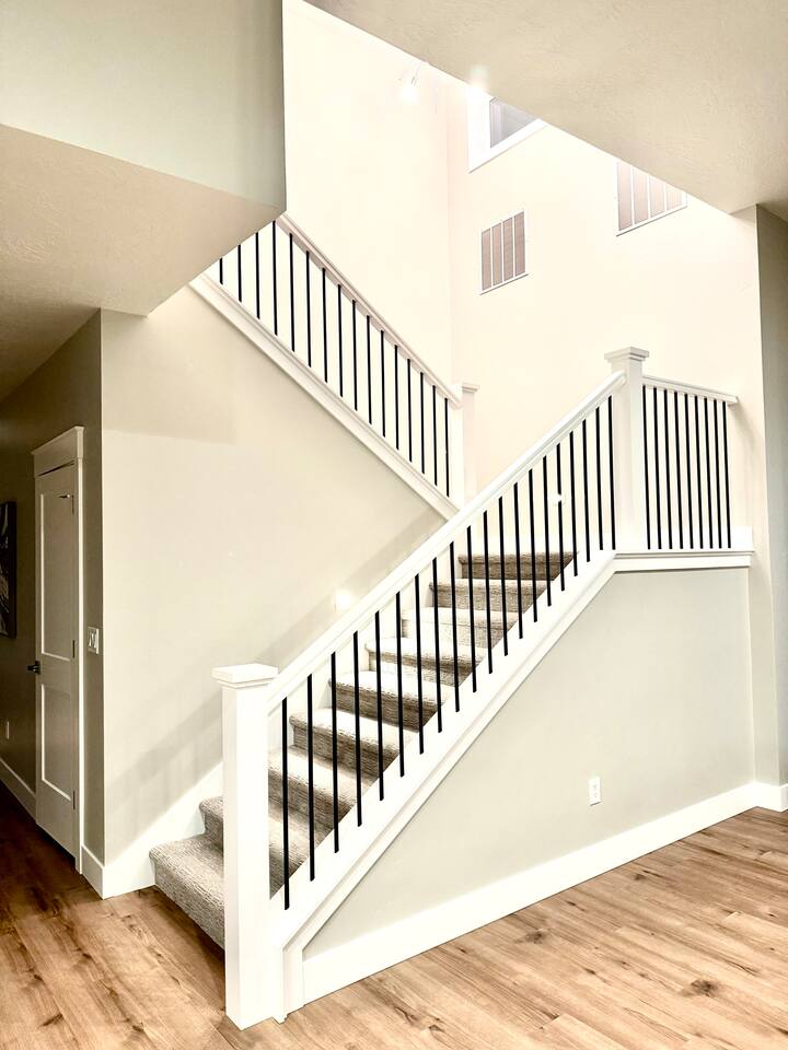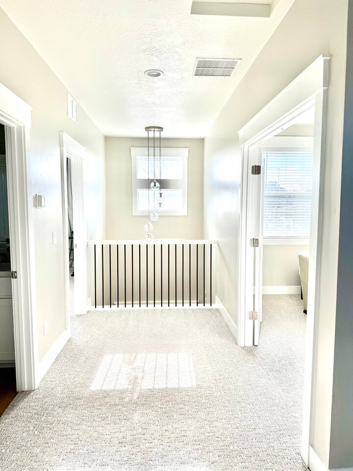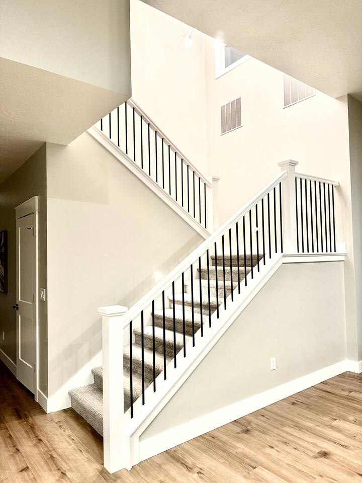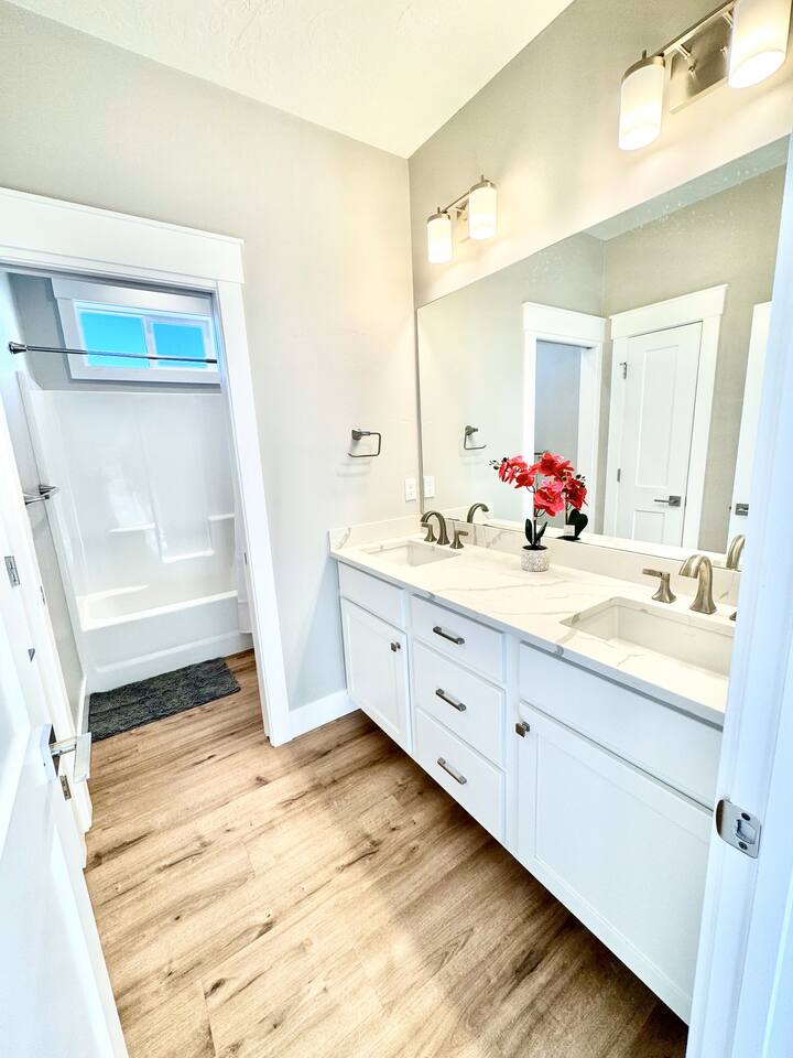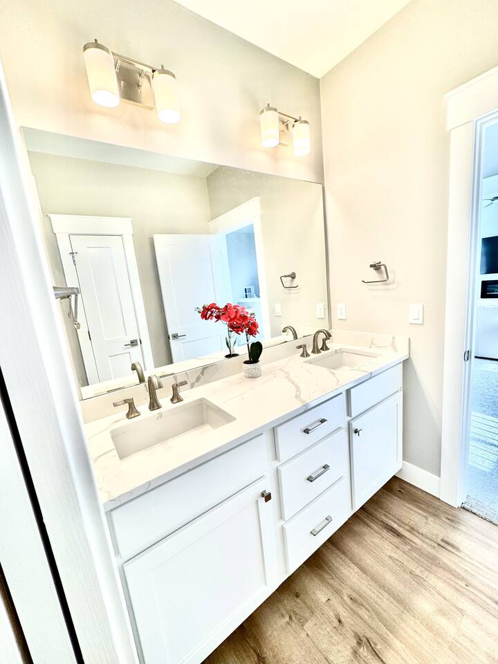 This is a beautiful new home with no detail overlooked! We thoroughly enjoyed our stay. The beds were super comfortable with high quality linens. We had all the kitchen and laundry essentials we needed for our visit. The bedrooms are spacious and quiet. There are two large Tv rooms. One upstairs and one down which worked well for us! And also a huge yard. All around just an amazing property and I will stay here again! Great communication with the host as well. She was super accommodating with us.