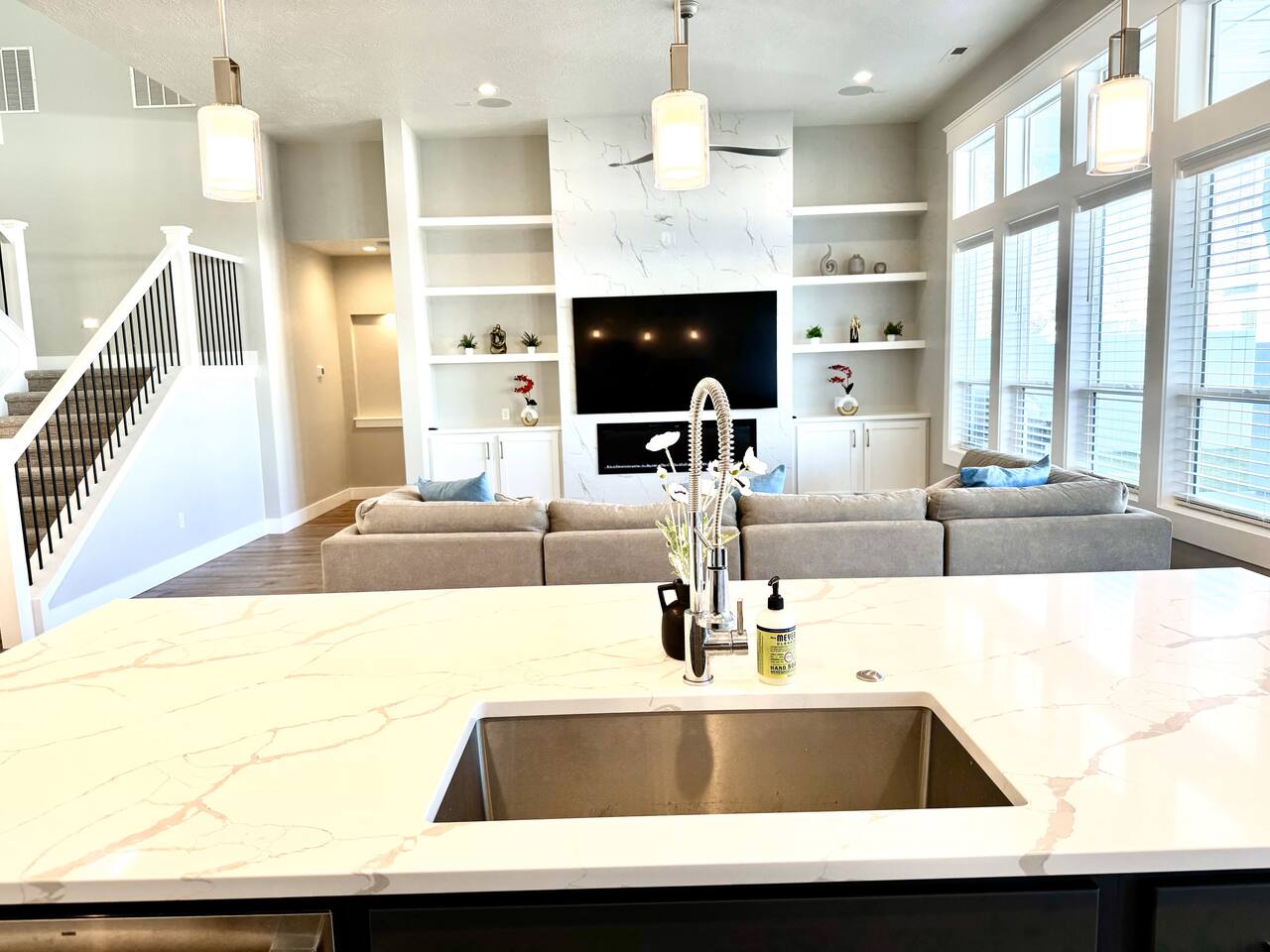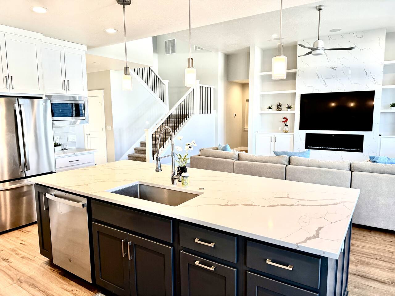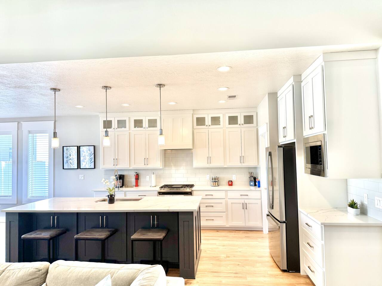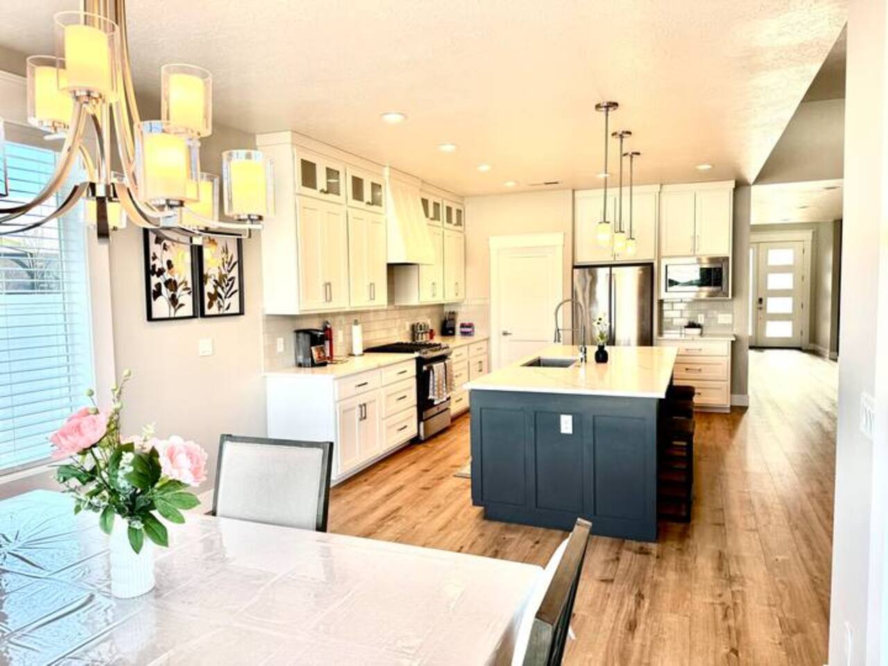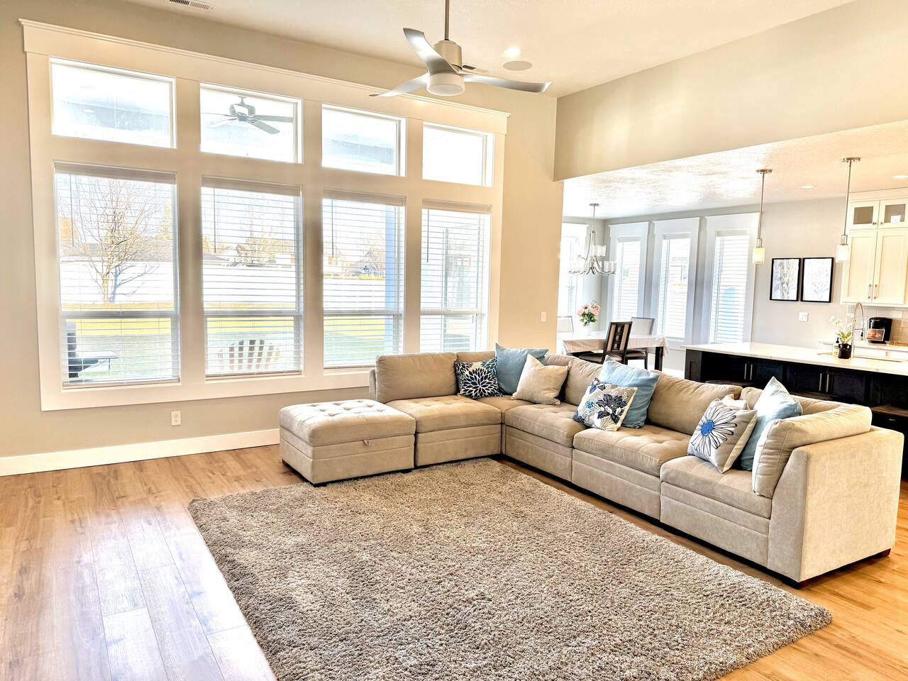 This is a beautiful new home with no detail overlooked! We thoroughly enjoyed our stay. The beds were super comfortable with high quality linens. We had all the kitchen and laundry essentials we needed for our visit. The bedrooms are spacious and quiet. There are two large Tv rooms. One upstairs and one down which worked well for us! And also a huge yard. All around just an amazing property and I will stay here again! Great communication with the host as well. She was super accommodating with us.