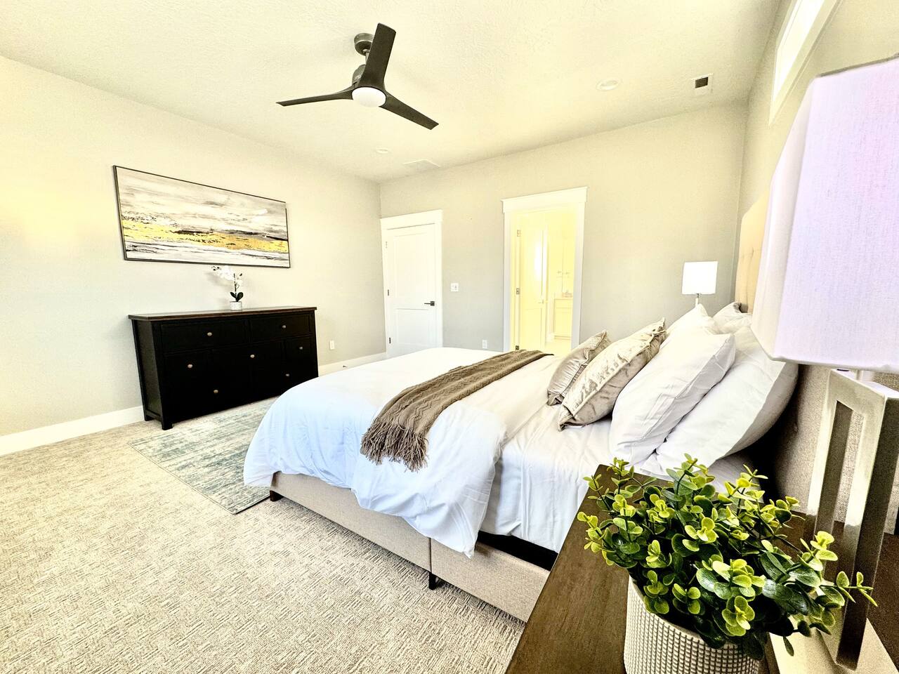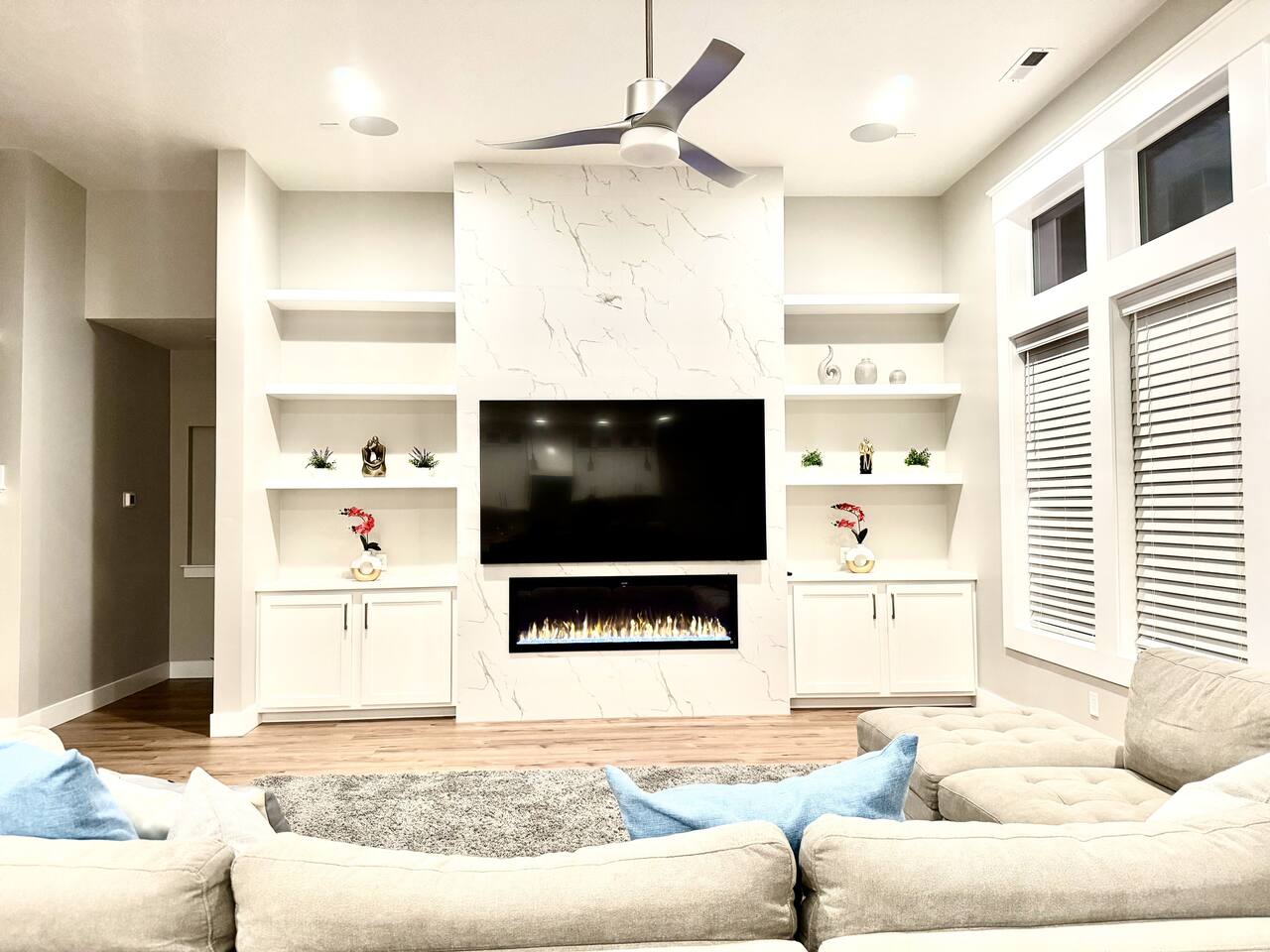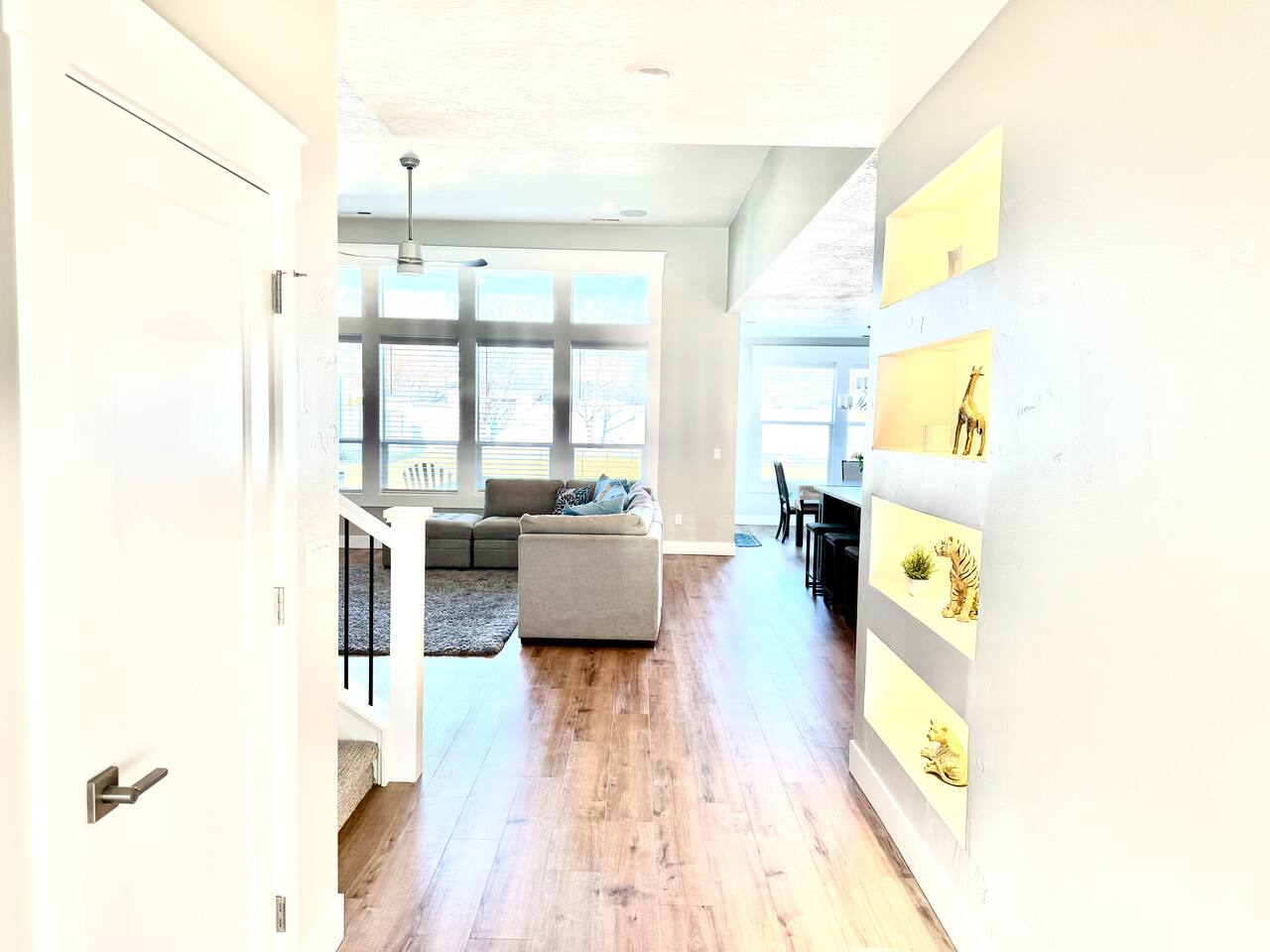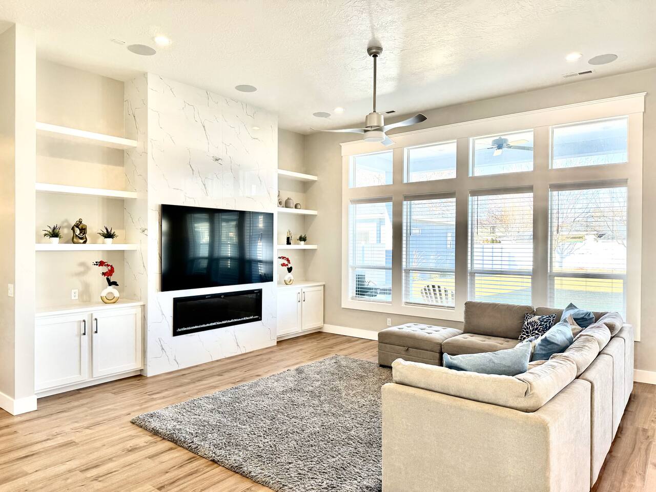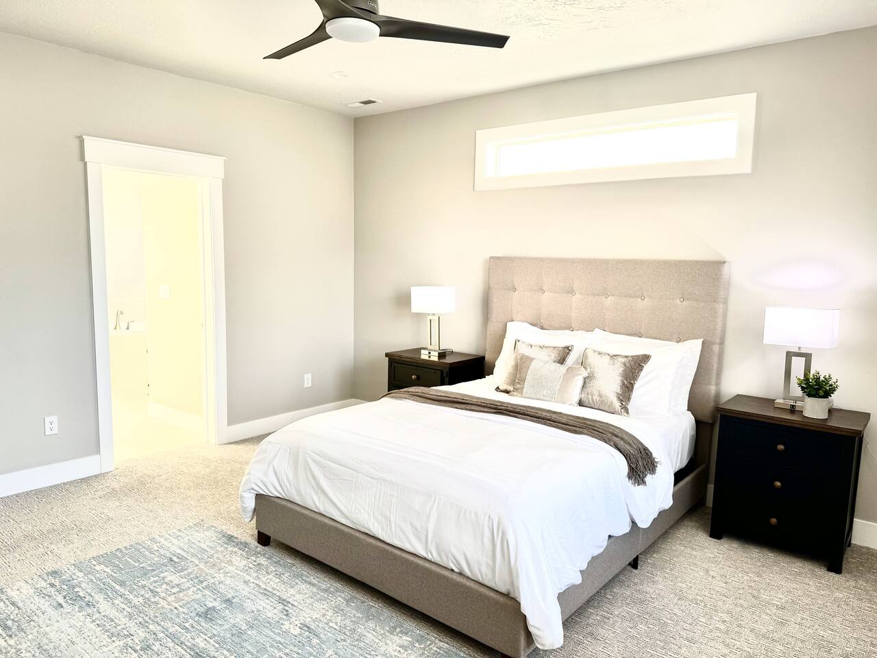 This is a beautiful new home with no detail overlooked! We thoroughly enjoyed our stay. The beds were super comfortable with high quality linens. We had all the kitchen and laundry essentials we needed for our visit. The bedrooms are spacious and quiet. There are two large Tv rooms. One upstairs and one down which worked well for us! And also a huge yard. All around just an amazing property and I will stay here again! Great communication with the host as well. She was super accommodating with us.